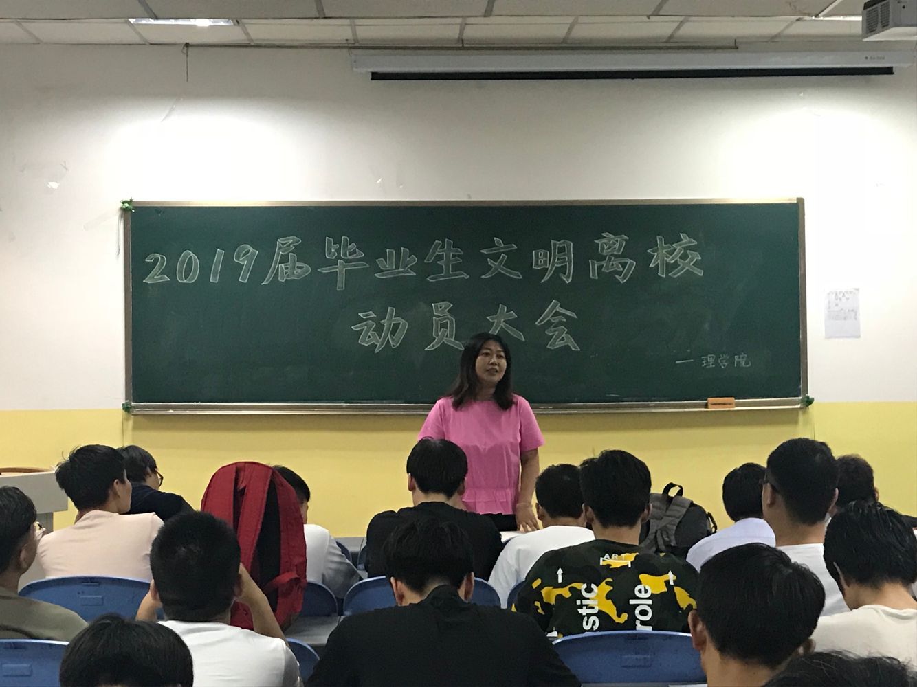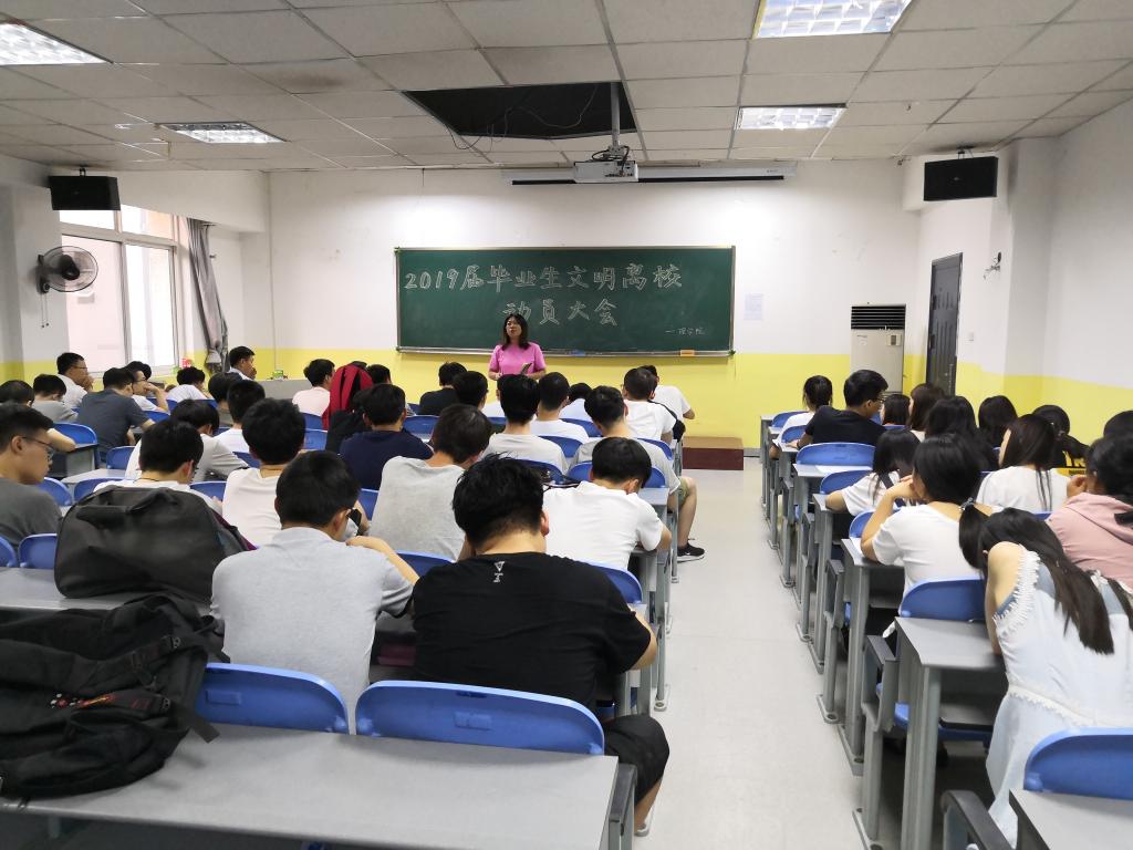 为提高毕业生文明离校意识,做好毕业生文明离校工作,6月13日19点30分,KY开元集团官网在南楼408教室召开了2019届毕业生文明离校动员大会。KY开元集团官网党总支书记李小光、学生管理科科长李扬、辅导员杨陈东和全体2019届毕业生参加了会议。会议由李扬主持。