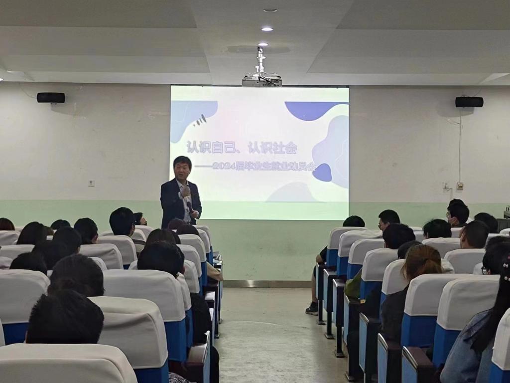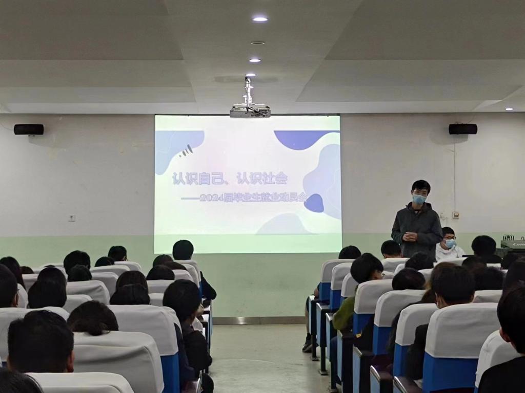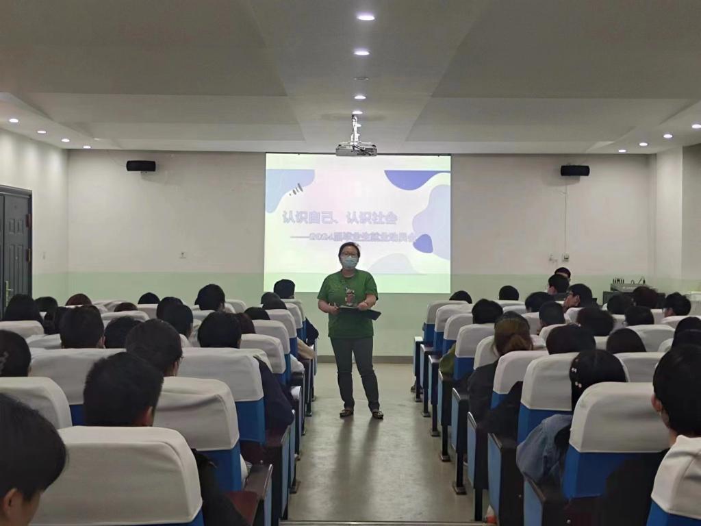 为持续做好KY开元官网毕业生就业工作,帮助大三学生做好职业规划,明确学习目标,6月16日,KY开元集团官网在莲湖校区南楼108教室召开了“认识自己、认识社会”2024届毕业生就业动员会。KY开元集团官网党总支书记胡红亮、学生管理科科长李扬、年级辅导员张岩及大三全体学生参加。